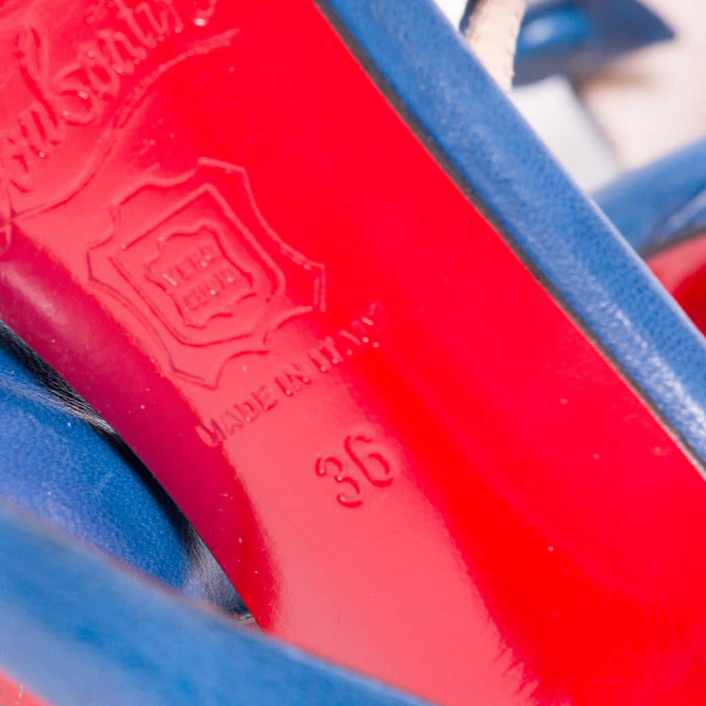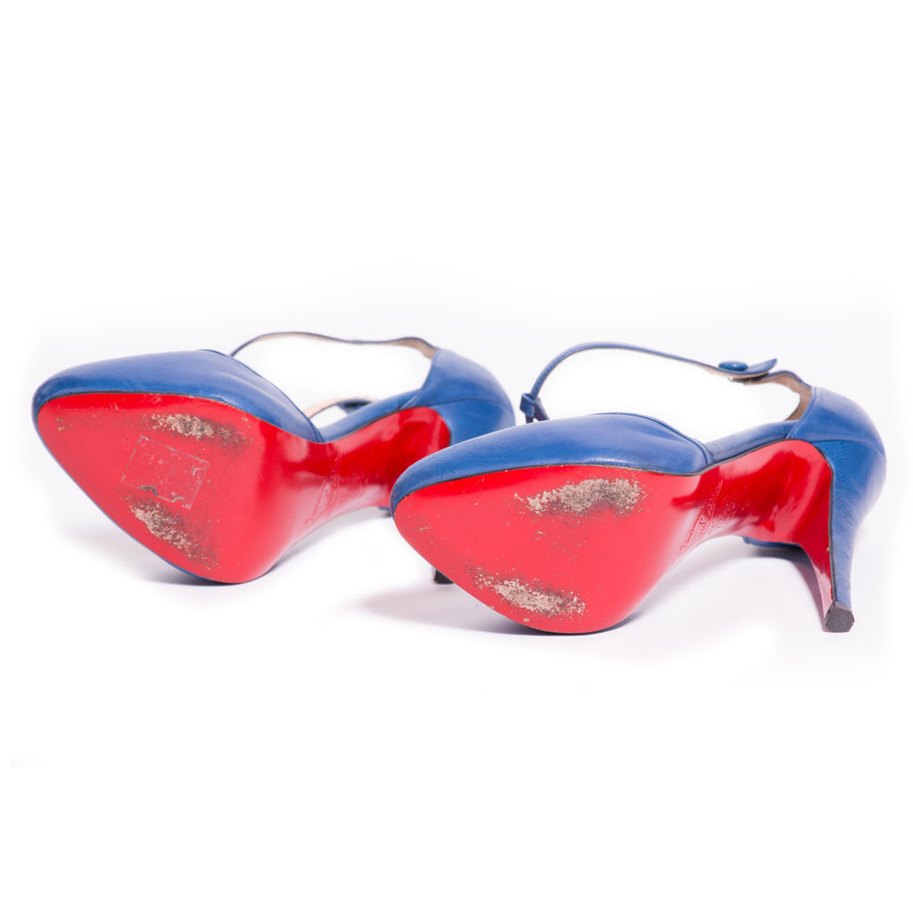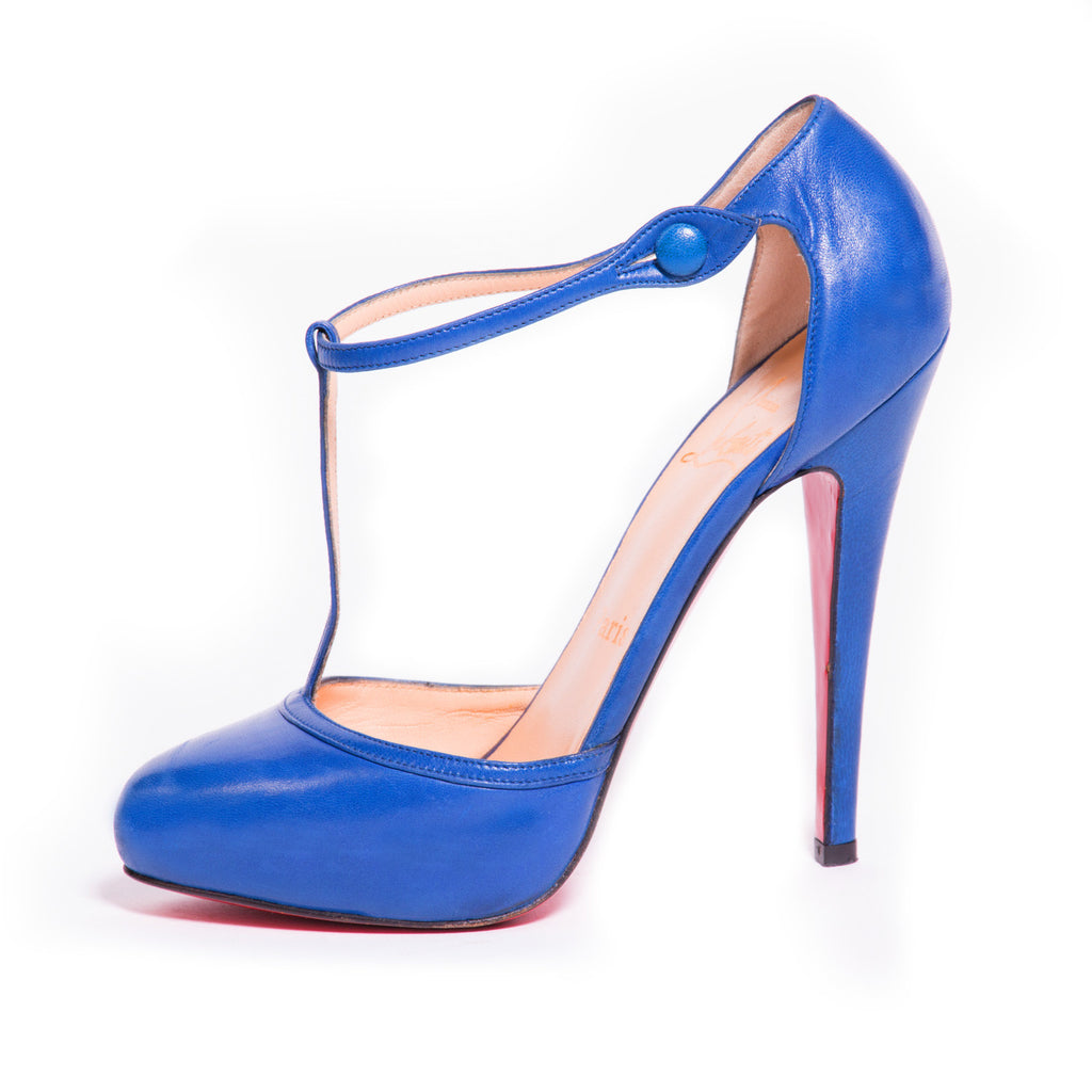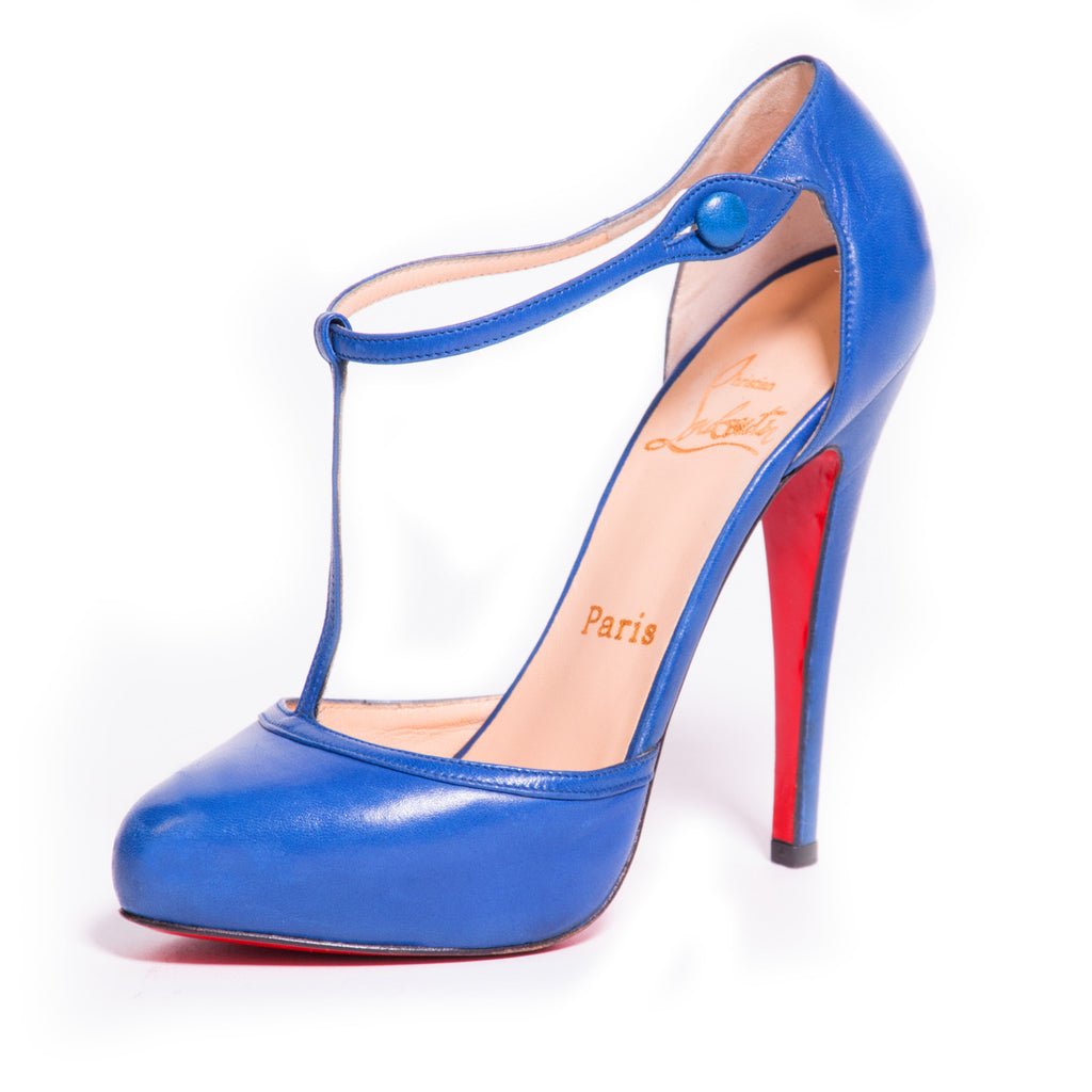 Description: Christian Louboutin Catwoman T-Strap Blue Pumps